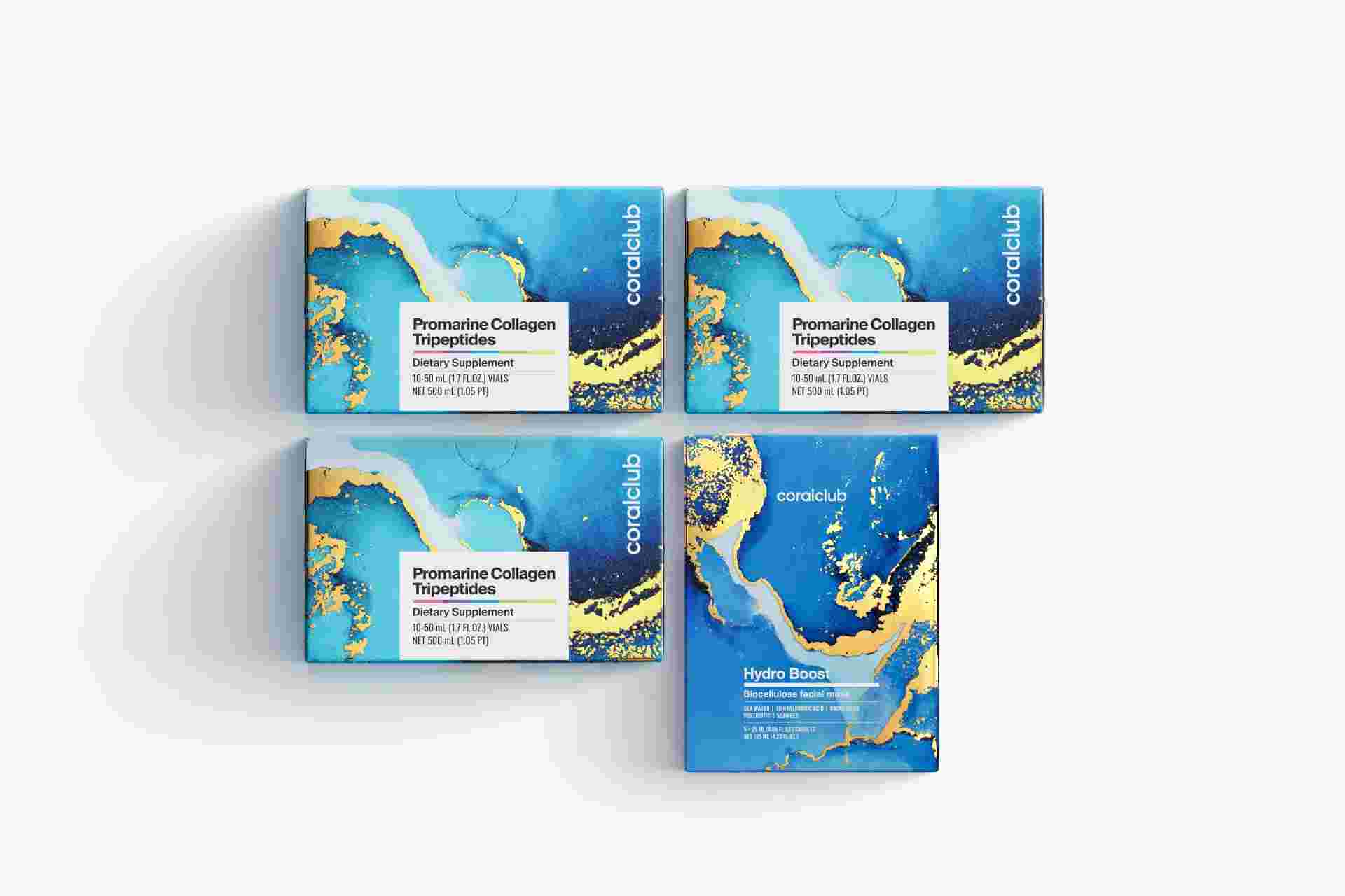 Promarine Collagen Tripeptides pack (1-month course) & HydroBoost biocellulose face masks (5 sachets)